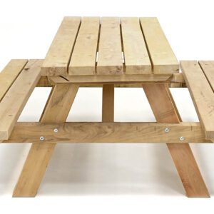 De picknicktafel kan gemonteerd worden geleverd of als bouwpakket.